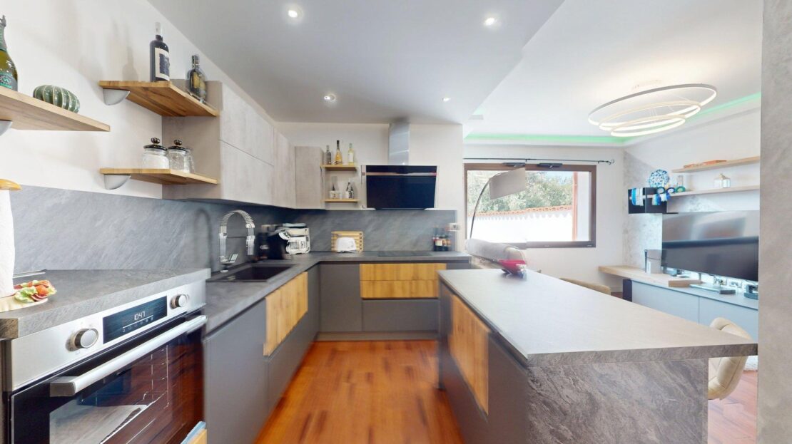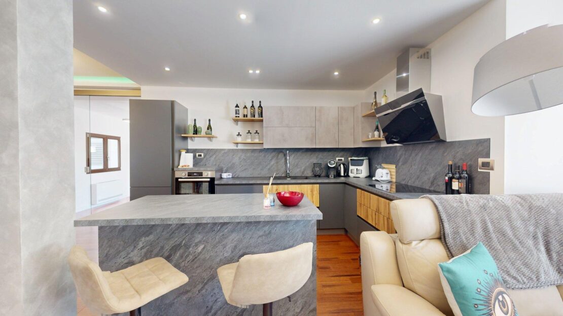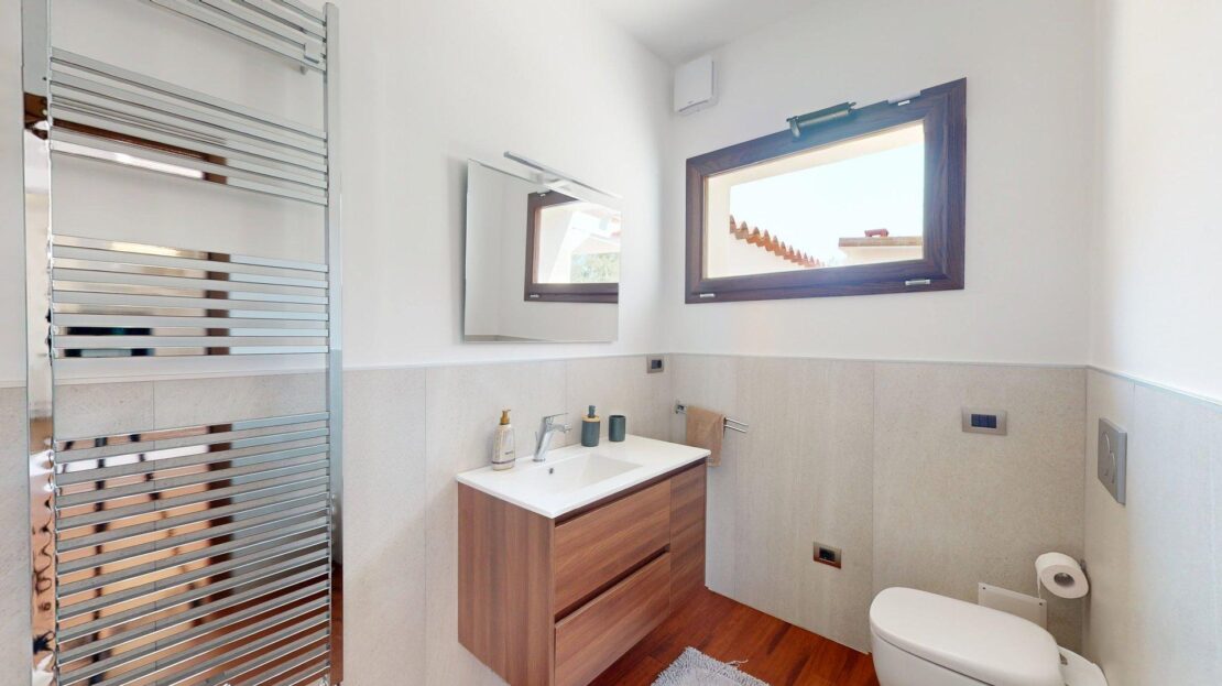 Questa residenza non è solo bella: è anche tecnologicamente avanzata e sostenibile. Il sistema di riscaldamento Ariston con termoconvettori in ogni ambiente assicura comfort diffuso, mentre nei bagni il piacere è amplificato dagli scalda salviette. L’acqua sanitaria è gestita da un moderno scaldacqua termodinamico da 110 litri, garanzia di efficienza e continuità. Sul tetto, i pannelli fotovoltaici con batterie di accumulo da 10 kW permettono un’importante autonomia energetica, abbinando risparmio e rispetto per l’ambiente. L’intera abitazione è rivestita da un cappotto termico in poliuretano espanso da 10 cm, che assicura un eccellente isolamento e comfort abitativo in tutte le stagioni.