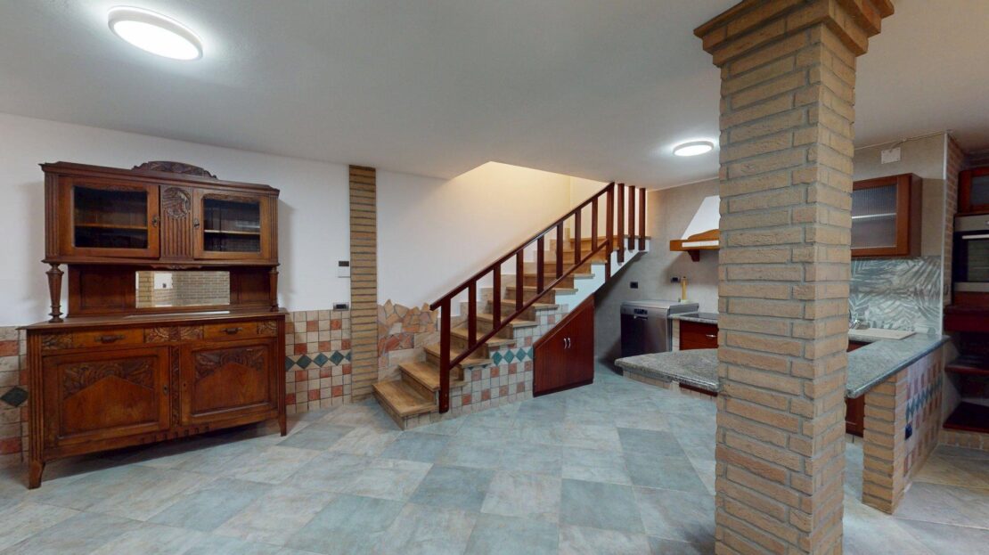 Il seminterrato ospita una taverna accogliente e versatile, perfetta per ricreare un ambiente conviviale, un’area hobby o fitness, affiancata da una dotazione tecnica di grande valore: una pompa sommersa per il tiraggio dell’acqua, che garantisce sicurezza e funzionalità in ogni stagione.