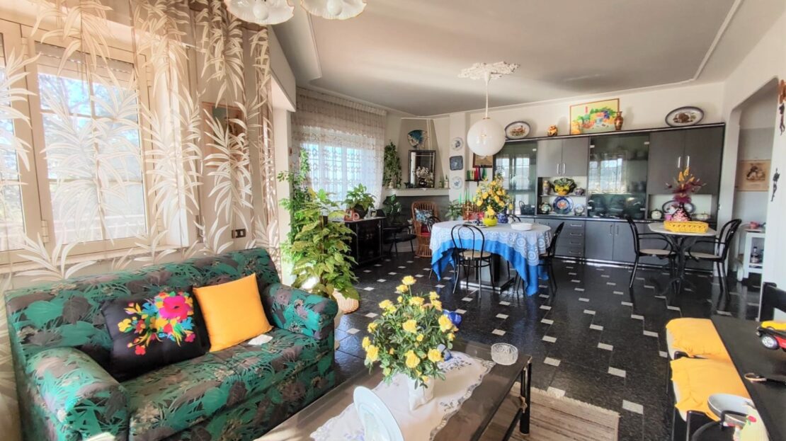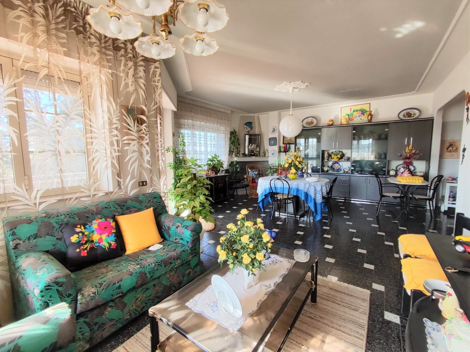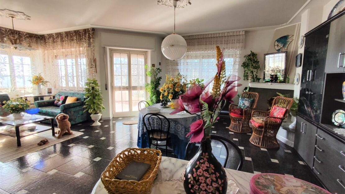 Si sviluppa su tre piani, per un totale di 260 metri quadrati, che includono ampi spazi interni ed esterni ideali per godere al massimo della vita all’aria aperta. Al piano seminterrato troviamo un luminoso e spazioso soggiorno arredato con gusto, che si apre su una veranda con vista sul giardino.