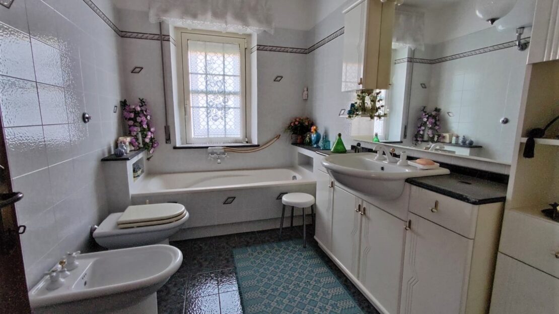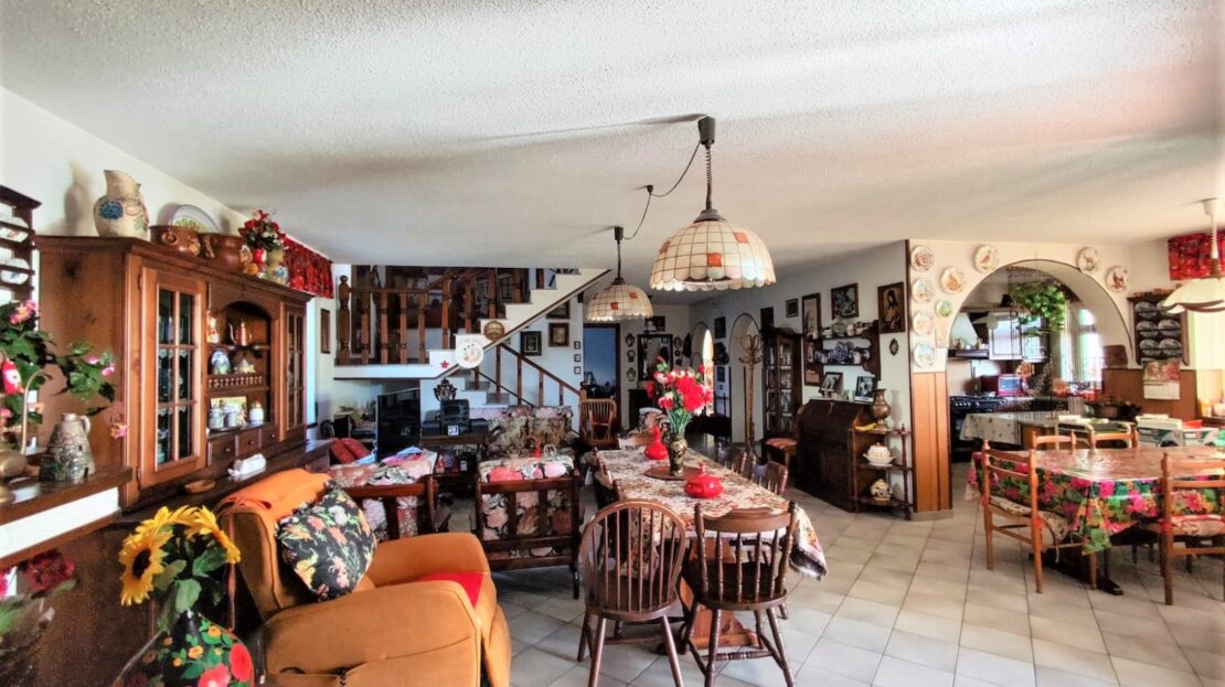 Completa il piano una comoda camera da letto e un bagno. Salendo al piano terra, si accede alla zona notte che ospita altre tre camere da letto, tutte ben illuminate.