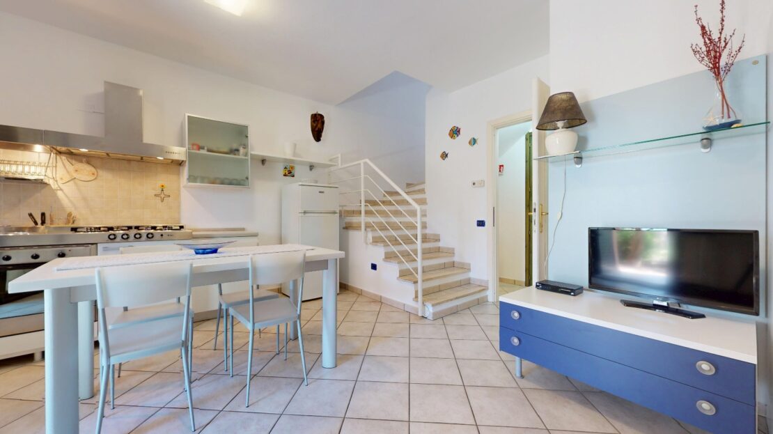 Al piano terra troviamo un accogliente ingresso, soggiorno con angolo cottura e accesso diretto a una veranda coperta e al cortile privato, ideale per rilassarsi all’aperto. Sempre al piano terra, un bagno completa la zona giorno.
