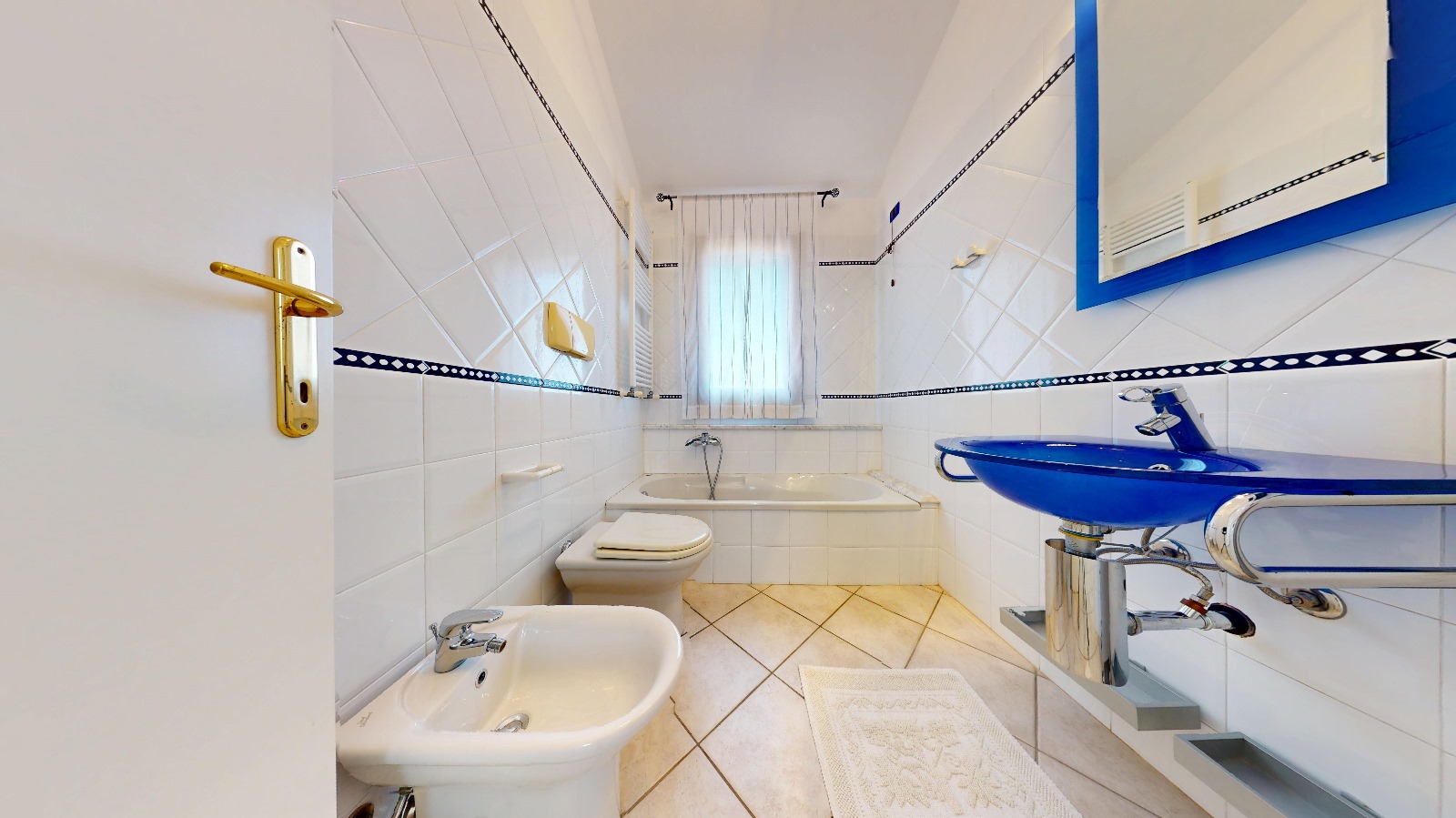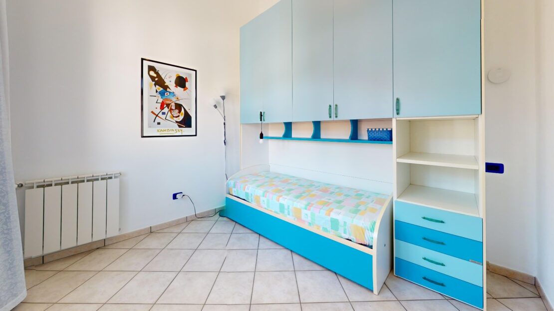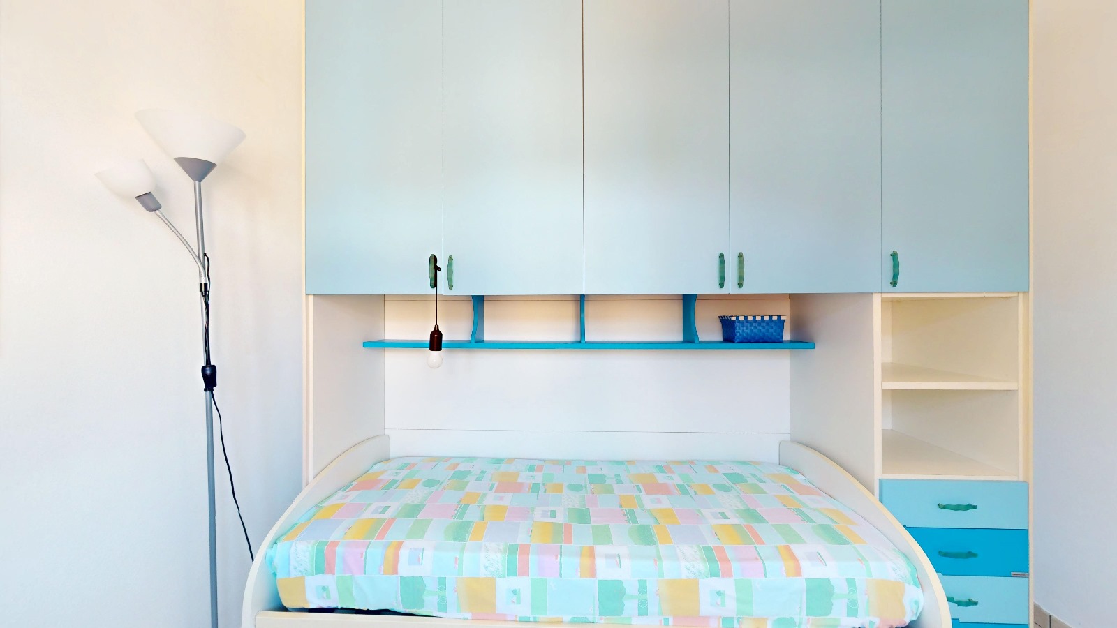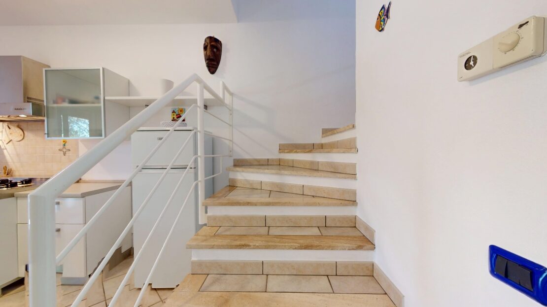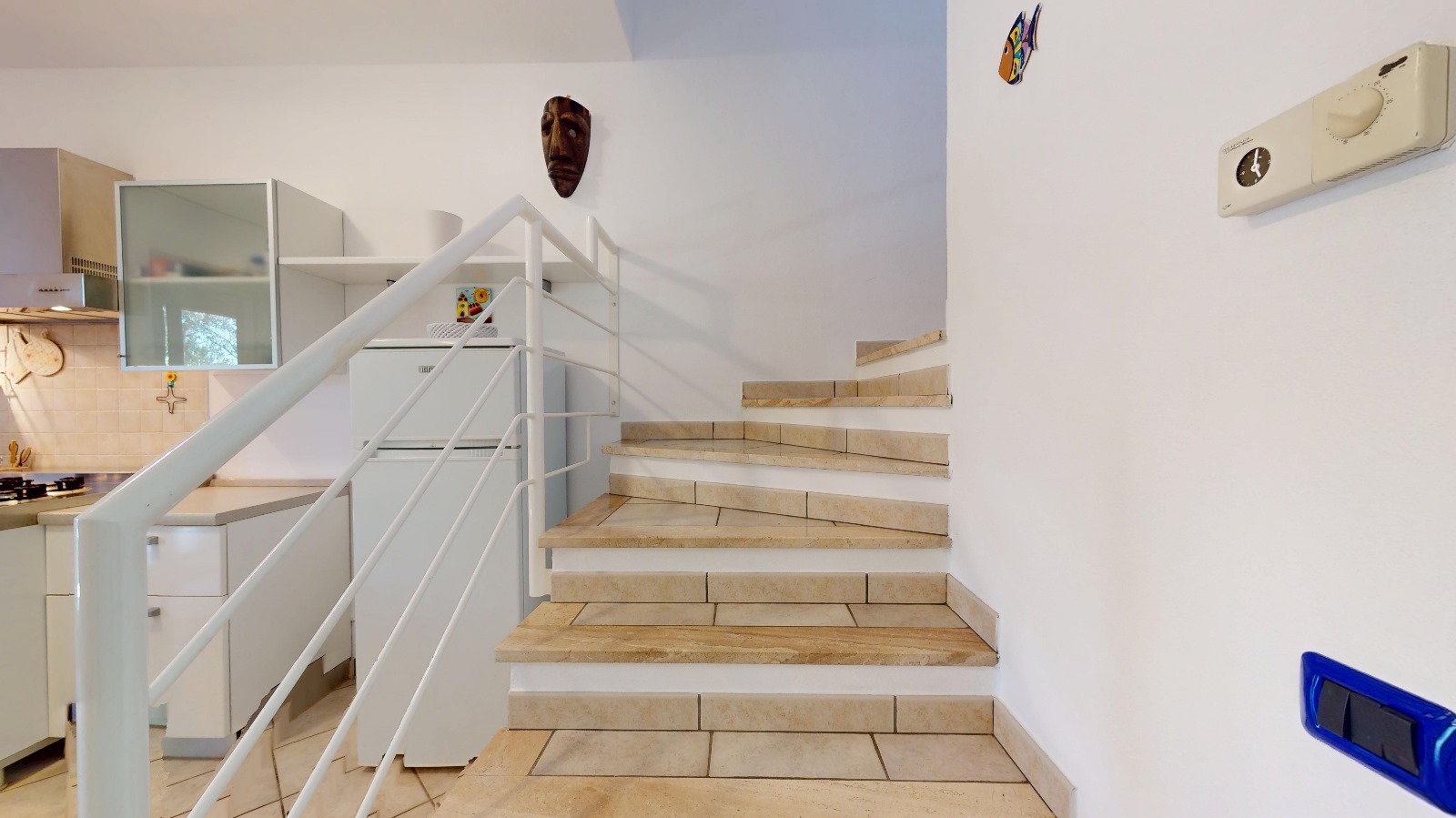 La zona notte si sviluppa al primo piano ed è composta da una camera matrimoniale con veranda privata, una camera singola e un secondo bagno.